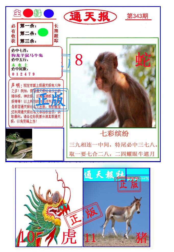 | 344期: ⑨肖 | 猴狗兔鼠猪龙蛇鸡马 | 龙38中 |