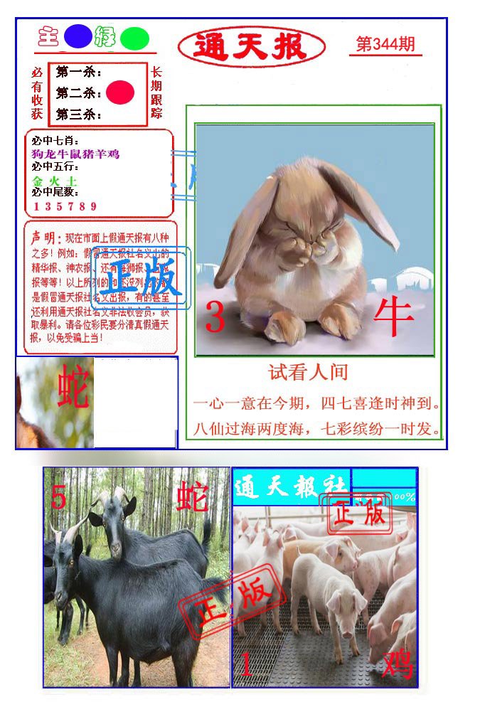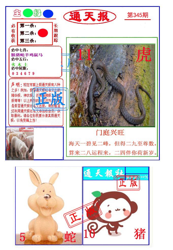 | 344期: ⑤肖 | 猴狗兔鼠猪 | 龙38中 |