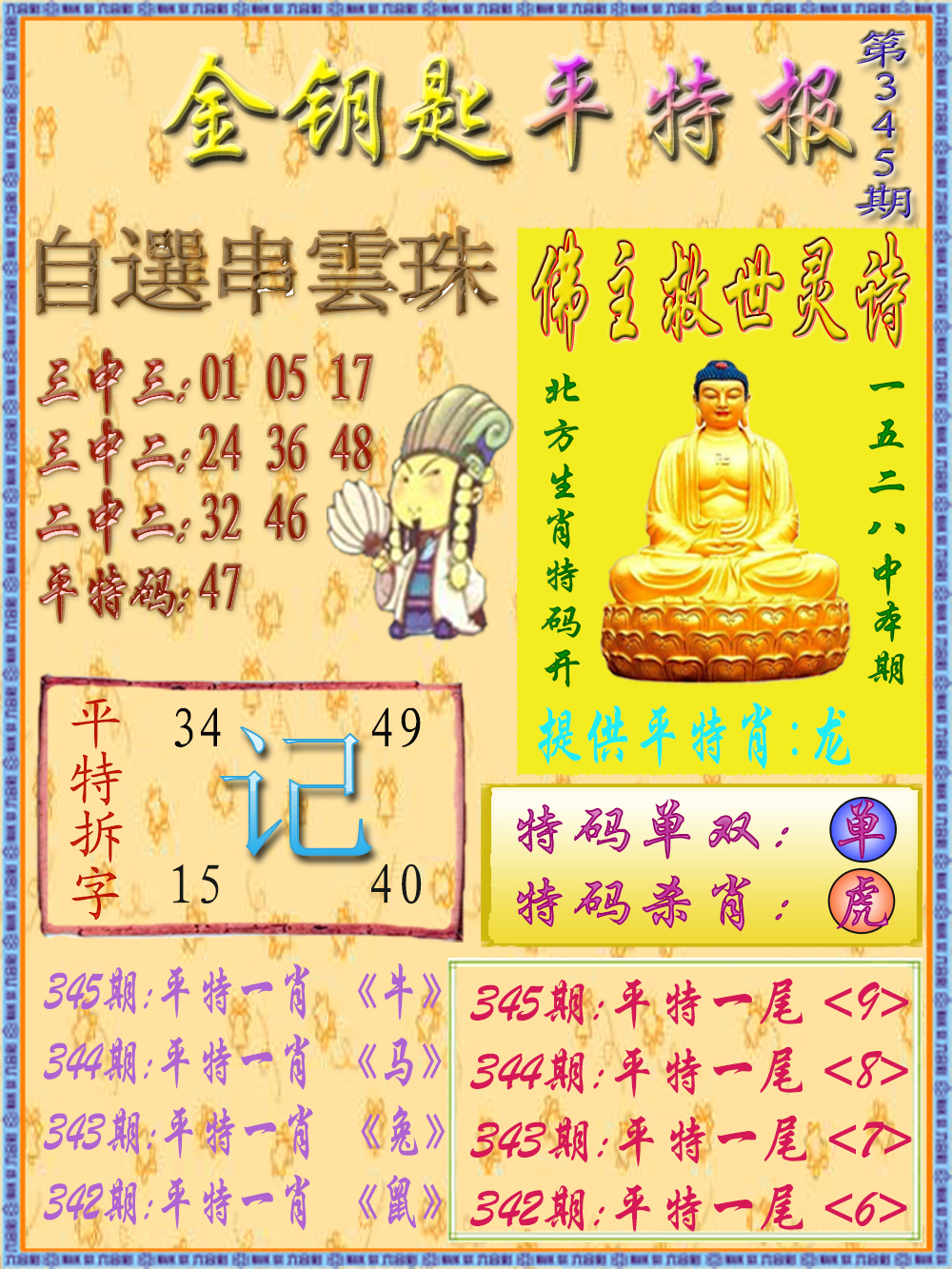 | 345期:公式平特 | 345期:公式家禽 | 345期:公式五尾 |